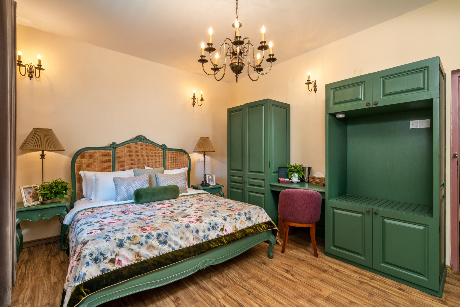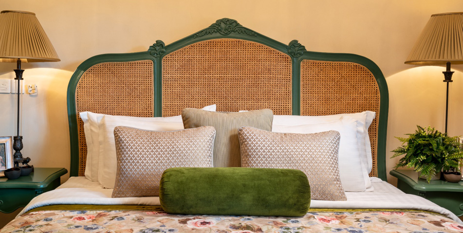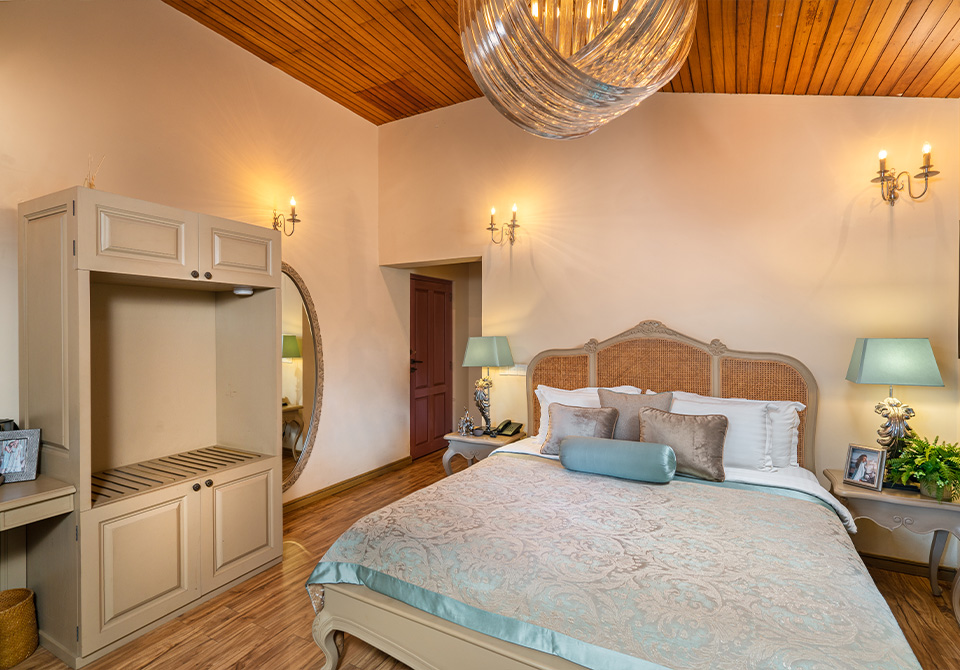 Clove Villa rooms allows guests to be transported into a calm space that shows off colonial elements through furnishing and serene views.